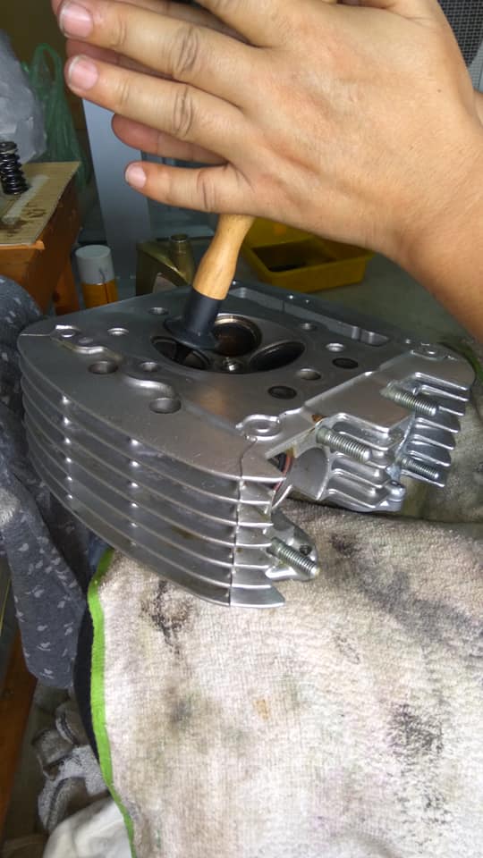 汽門磨好,清潔好,把泡在機油的新油封小心裝上去,確認再確認裝好後,再把汽門彈簧給裝回去!搞定,收工!